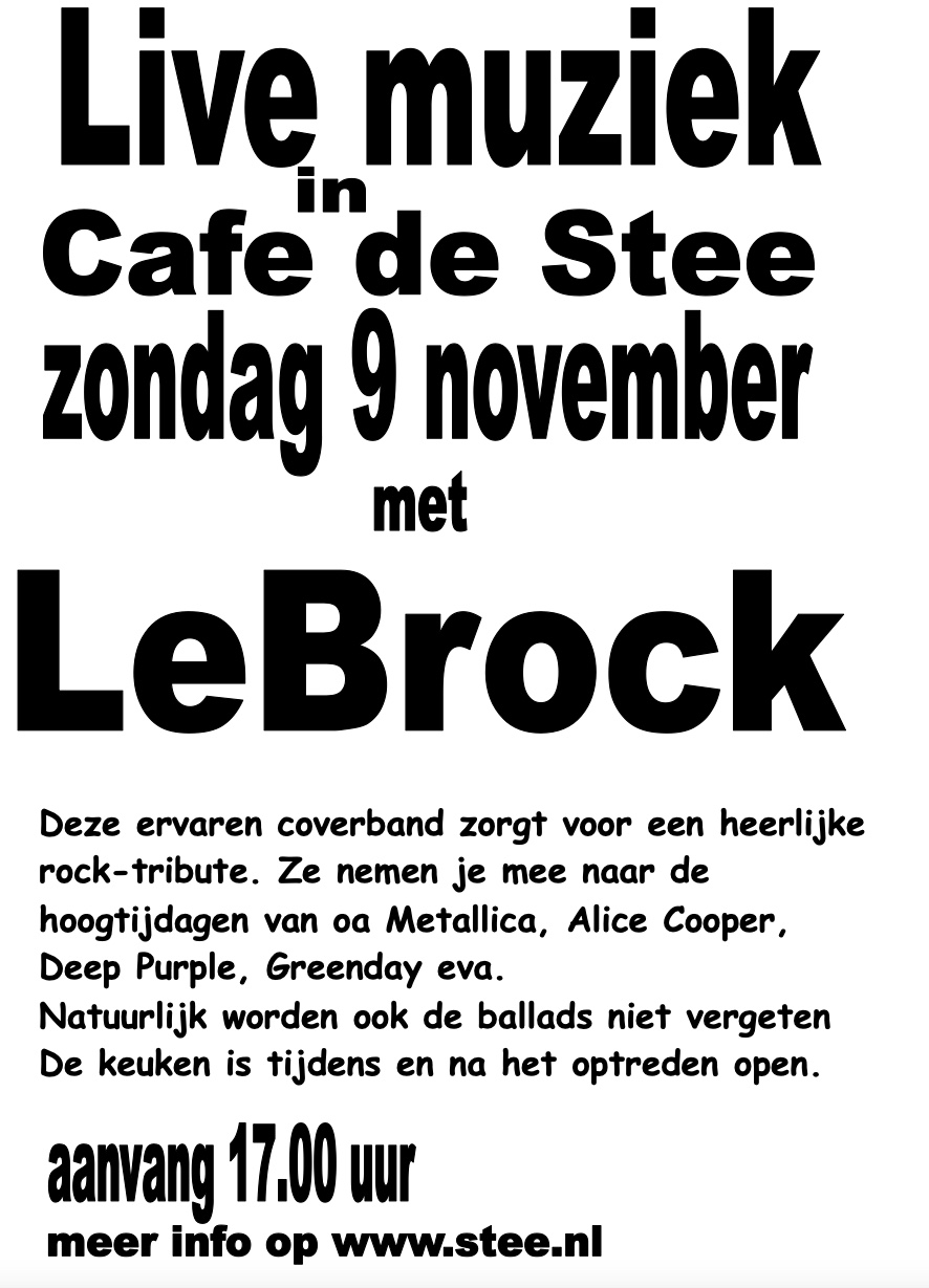 Home » Agenda » 9 november – Live muziek met coverband LeBrock