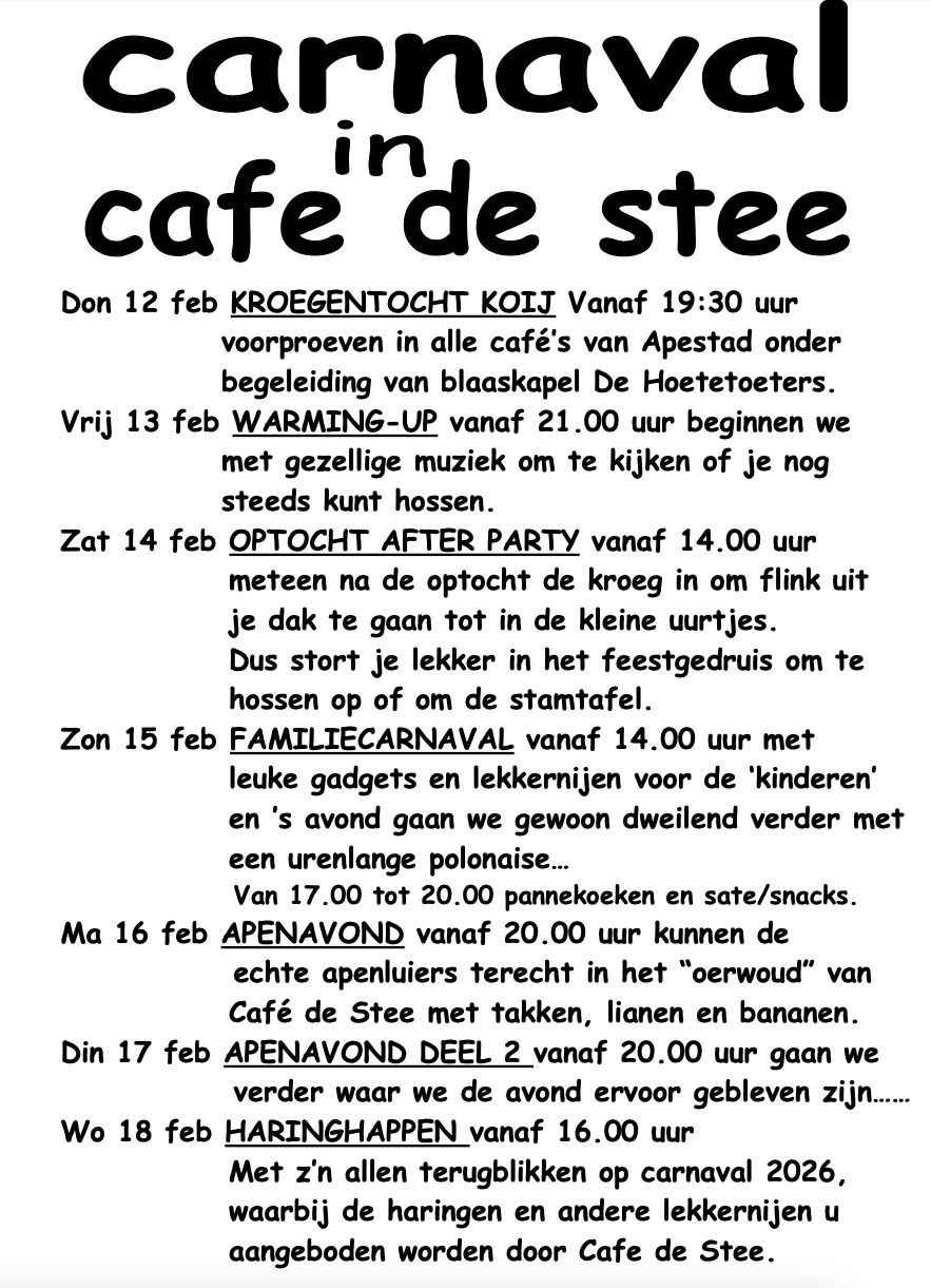 Home » Agenda » Carnaval 2026 in Café de Stee
