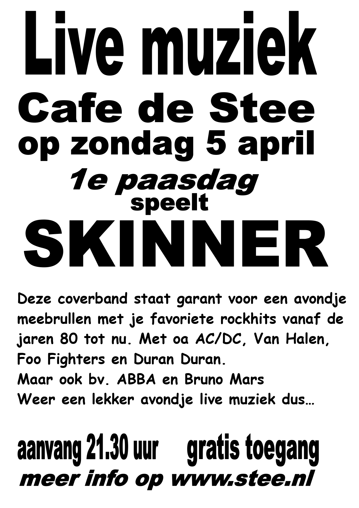 Home»Agenda» Live muziek – Zondag 5 april – Met SKINNER